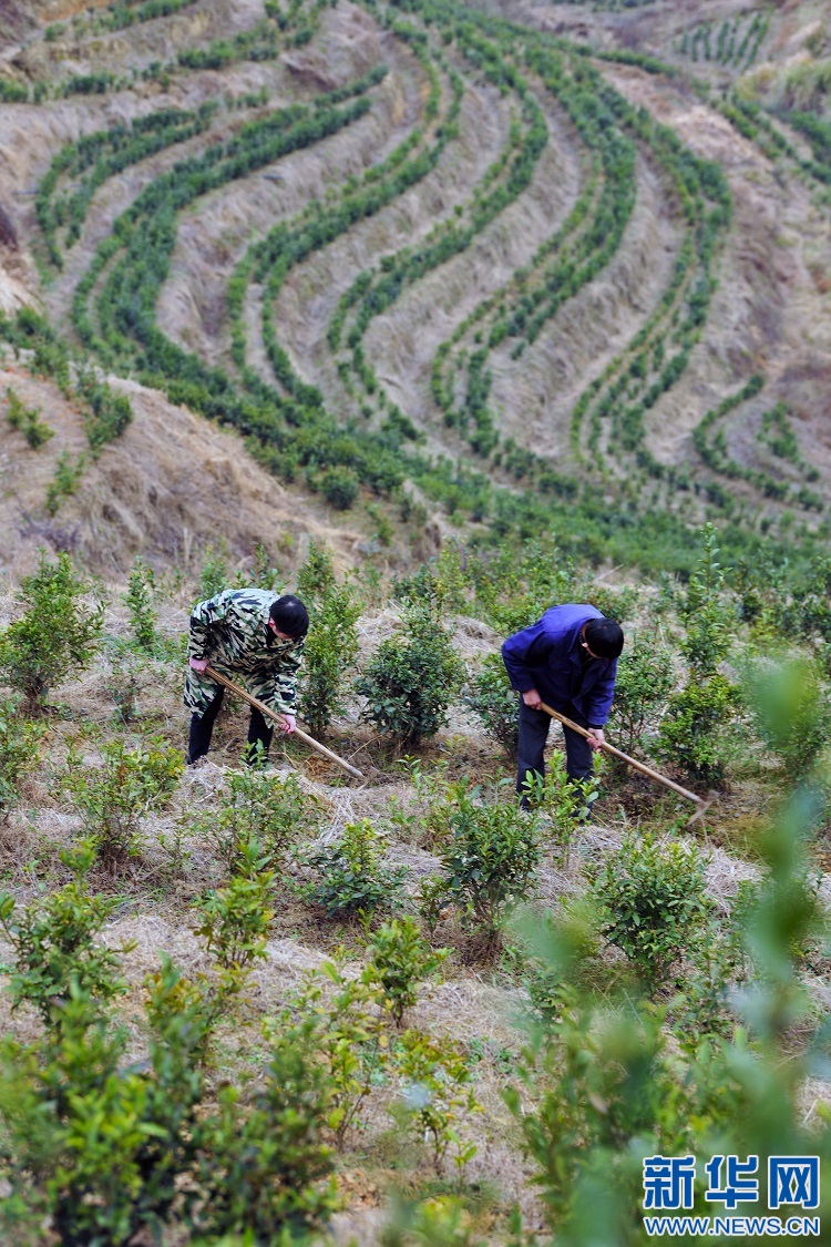 村民在茶葉基地除草。新華網發(fā) 鄧龍華攝
