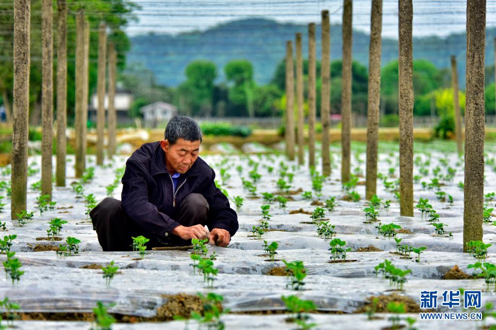4月5日,福建省南平市建陽區(qū)莒口鎮(zhèn)馬伏村村民在田間育苗。