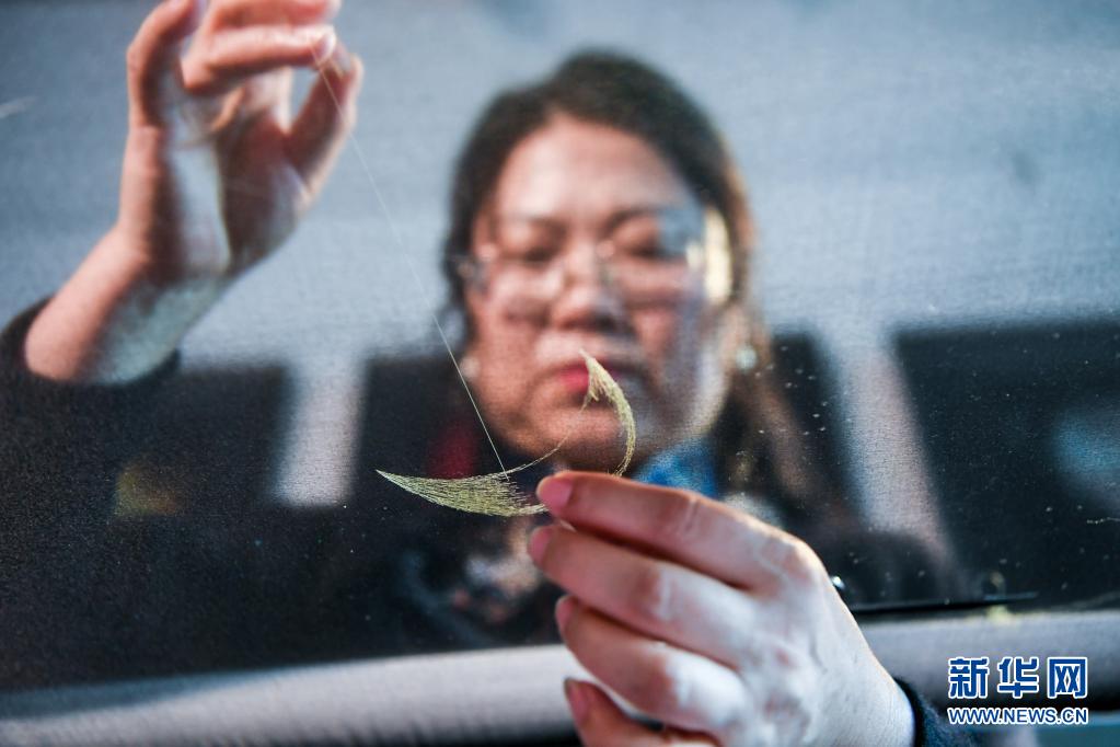 陳英華在位于蘇州高新區(qū)鎮(zhèn)湖街道的蘇繡工作室內刺繡(4月14日攝)。新華社記者 李博 攝