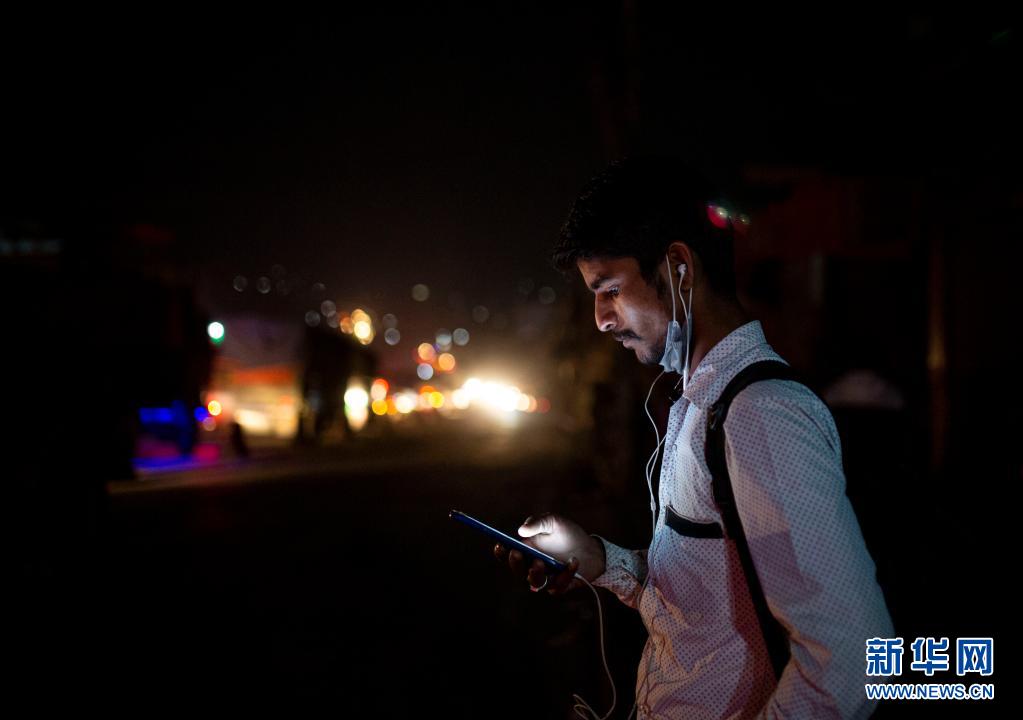 4月28日晚,一名男子在尼泊爾首都加德滿都的路邊等車,準(zhǔn)備在封禁措施實施前離開加德滿都返回家鄉(xiāng)。