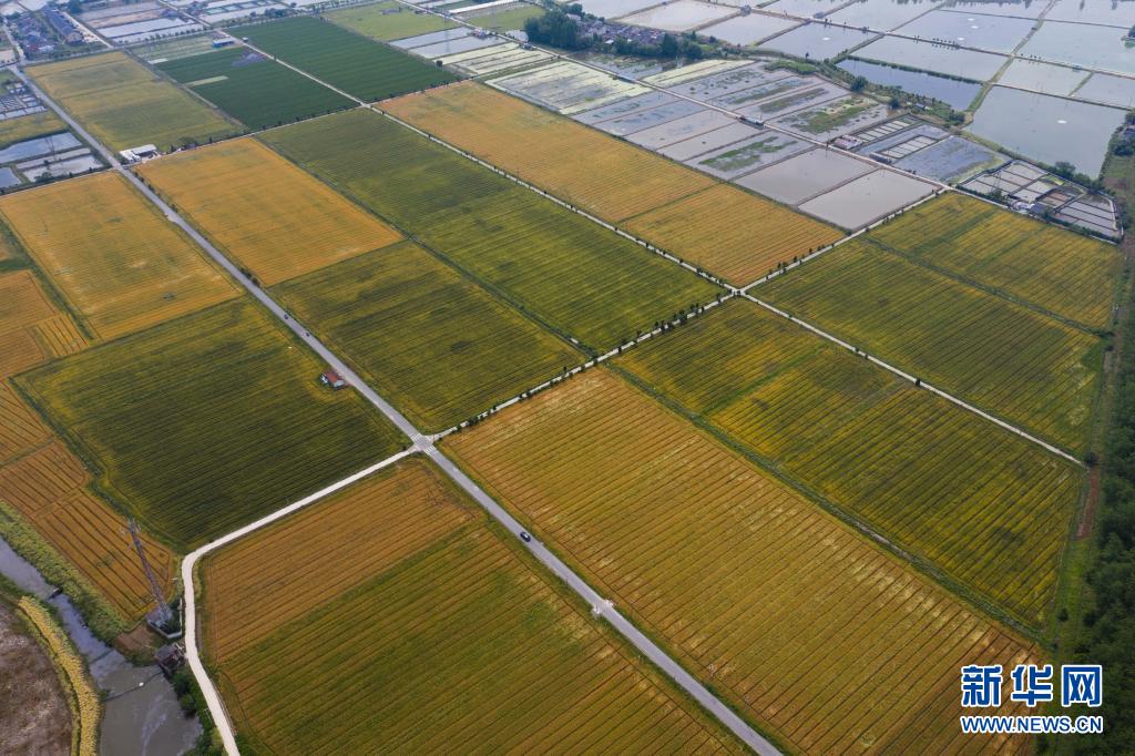 空中俯瞰東林鎮(zhèn)東升村麥田(5月7日攝,無人機(jī)照片)。