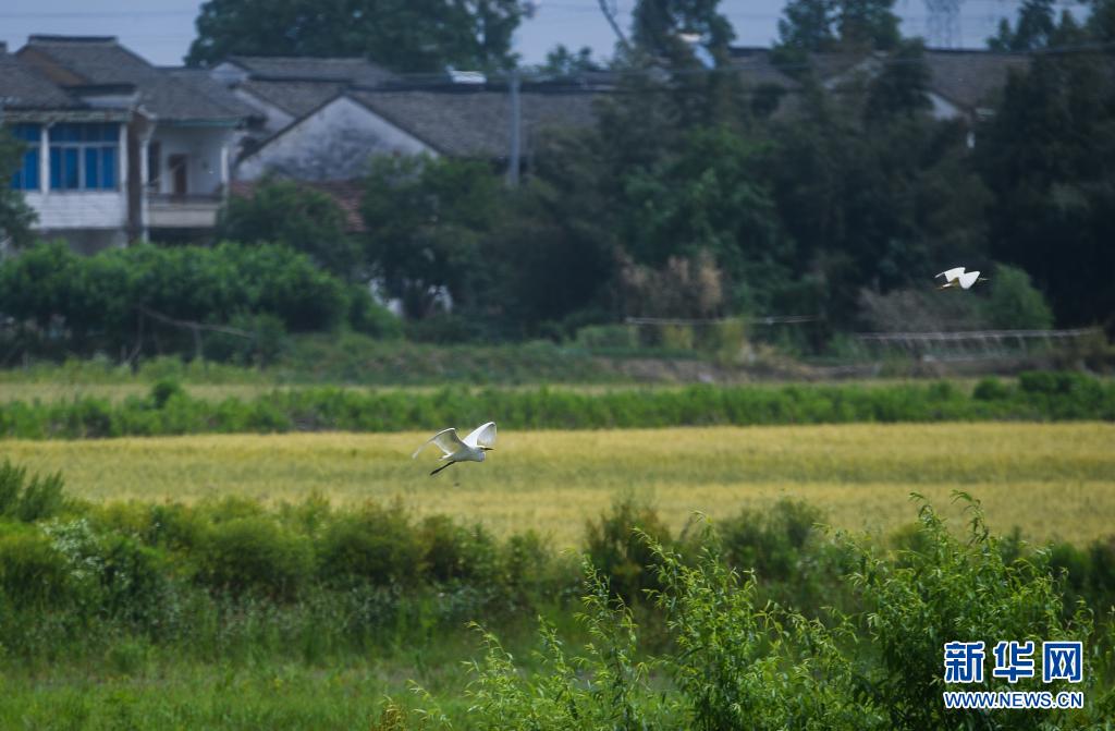 在東林鎮(zhèn)東升村,白鷺飛過麥田(5月7日攝)。