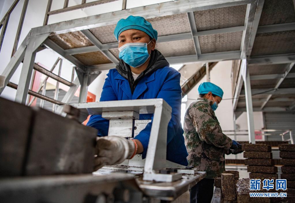 西藏易貢茶場(chǎng)的工人在制作磚茶(4月1日攝)。新華社記者 孫非 攝