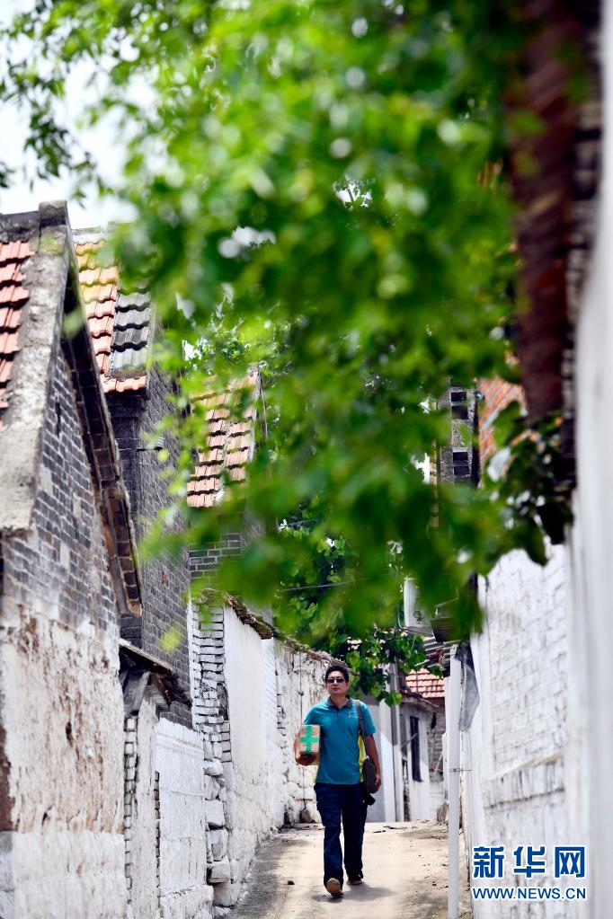 6月20日,在微山縣南陽(yáng)鎮(zhèn),郵遞員王少朋為柳溝村村民投遞郵件。
