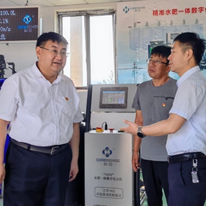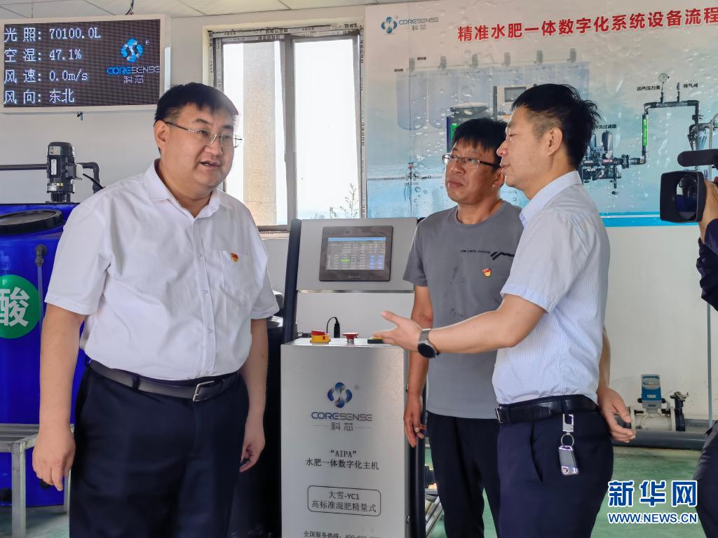 6月23日,劉偉(左一)在太谷區(qū)閆村科芯園區(qū)水肥一體化車間調研。新華社發(fā)