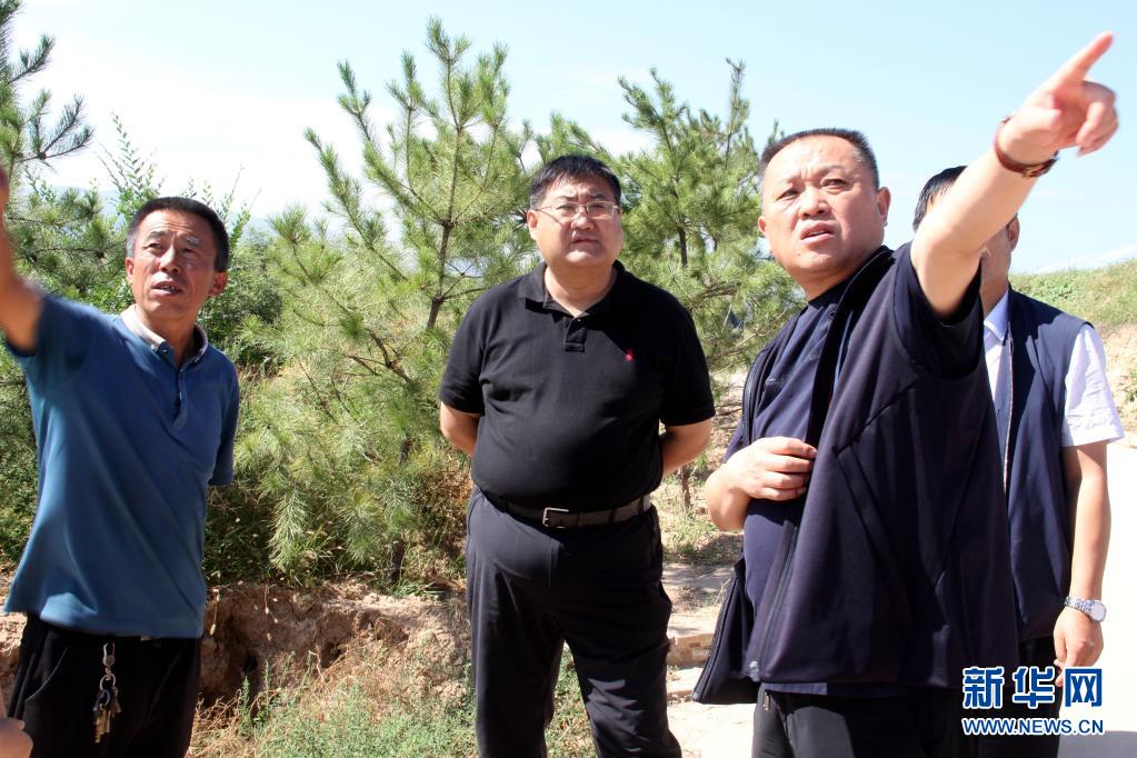 劉偉(左二)在太谷區(qū)西曲河旱垣溫室調研(2020年9月6日攝)。新華社發(fā)
