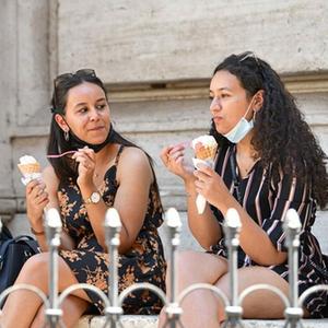 7月11日,兩名女子在意大利羅馬吃冰淇淋消暑。