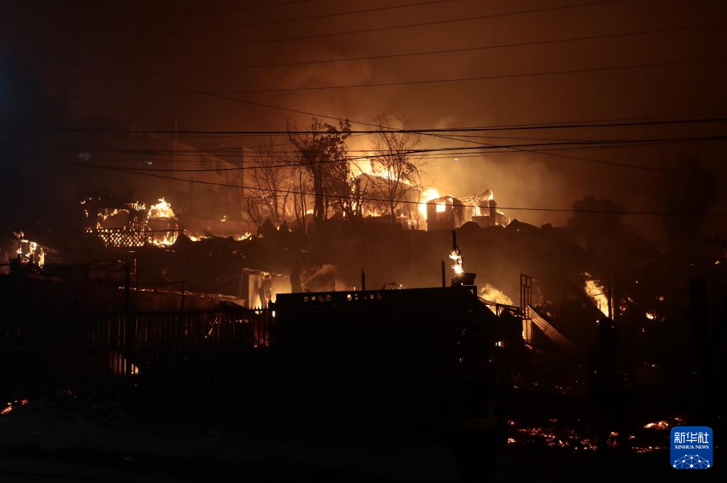 1月18日,消防员在智利比奥比奥大区彭科市救火。新华社发