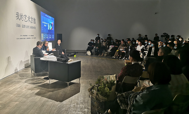 4月1日,“我的藝術(shù)方法——《徐冰:思想與方法》新書分享會”在北京798藝術(shù)區(qū)舉行。作為湖南美術(shù)出版社在北京圖書訂貨會的重要活動之一,主辦方特邀本書作者徐冰、UCCA尤倫斯當(dāng)代藝術(shù)中心館長田霏宇、著名設(shè)計師孫華共同出席活動,暢聊徐冰的新書和藝術(shù),探討“徐冰:思想與方法”在呈現(xiàn)與觀看中的多重經(jīng)驗。