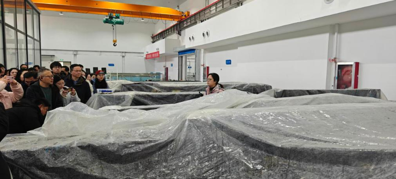 网文作家们在安徽淮南武王墩墓考古实验室听取考古讲解。新华社记者余俊杰 摄