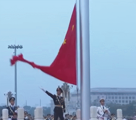 伴随着五星红旗冉冉升起