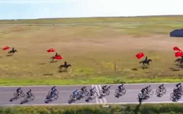 为骑手们擎旗助威