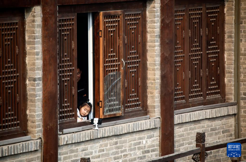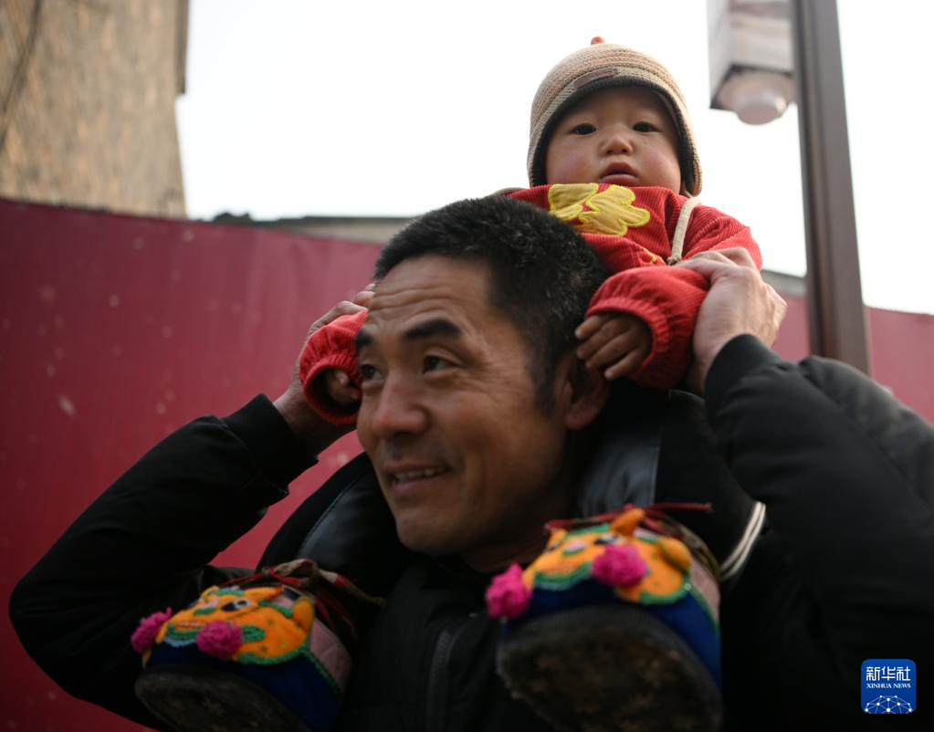 2月6日,社火团队的小演员在表演间隙嬉戏。