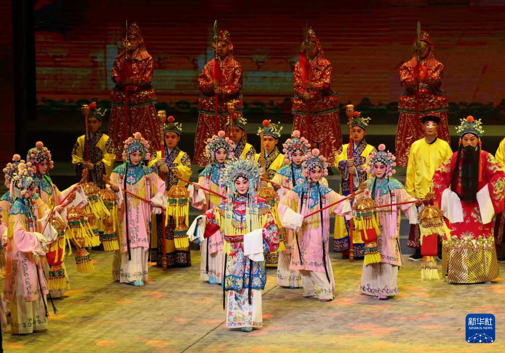 4月26日,演员在开幕式演出现场表演秦腔、晋剧、滇剧、河北梆子等多剧种版《大登殿》。