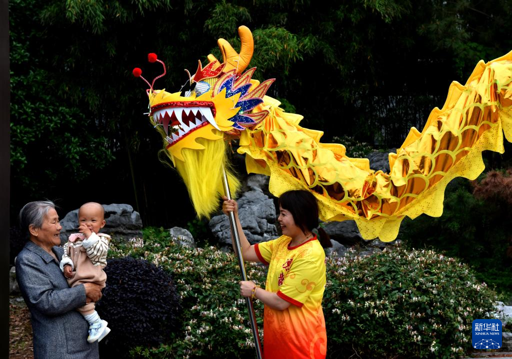 5月7日,江苏省级非遗项目丁伙龙舞表演队在江苏省扬州市江都区丁伙镇朴园表演。