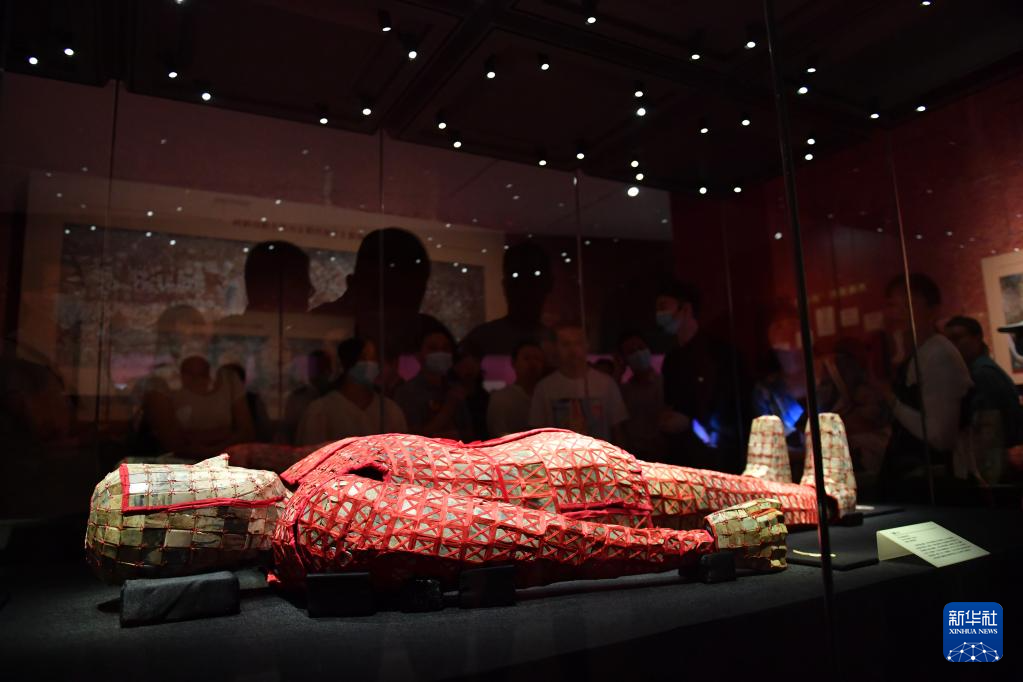 5月18日,观众在长沙博物馆参观展品丝缕玉衣。