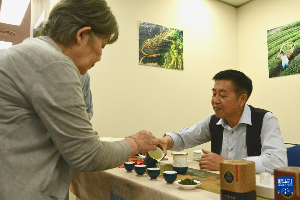 5月21日,在美国华盛顿中国驻美国大使馆,茶艺师为来宾表演茶艺。