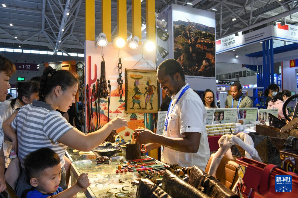6月9日,在文博会“文旅消费馆·一带一路国际馆”马里展台,观众在选购特色商品。