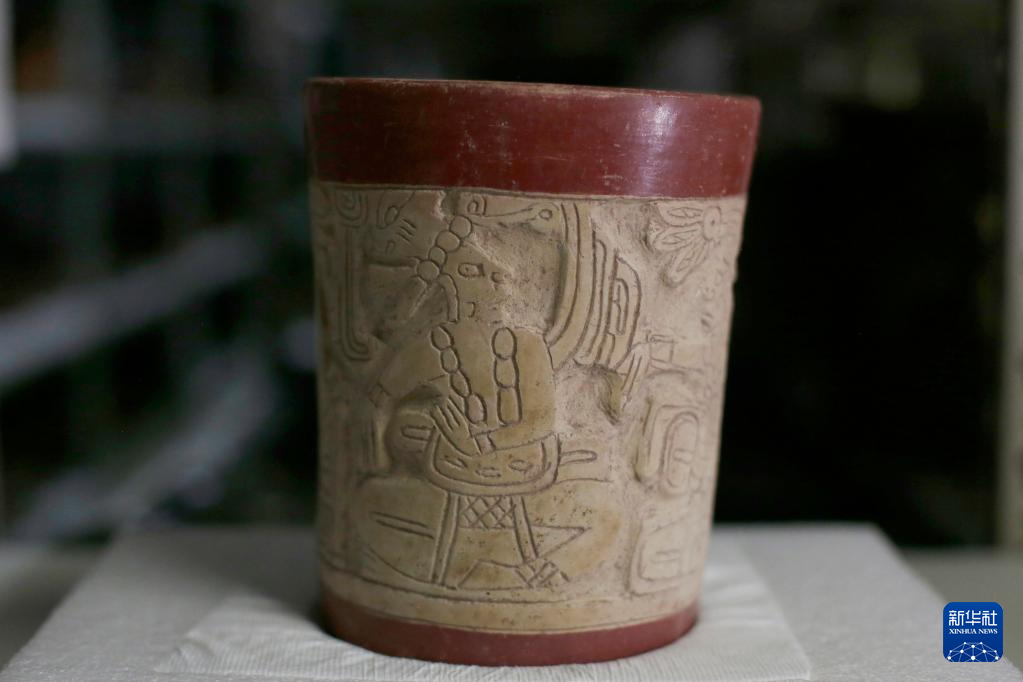 这是6月8日在洪都拉斯科潘玛雅遗址国际考古队仓库内拍摄的由中洪联合考古队发掘出的陶器文物。新华社发(卢西奥·塔沃拉摄)