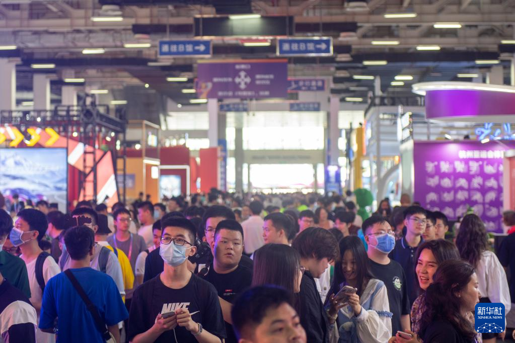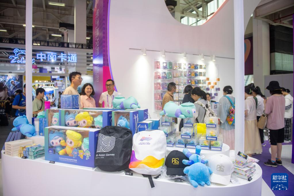 6月20日,观众在第十九届中国国际动漫节产业博览会上参观杭州亚运会展台。新华社记者 江汉 摄