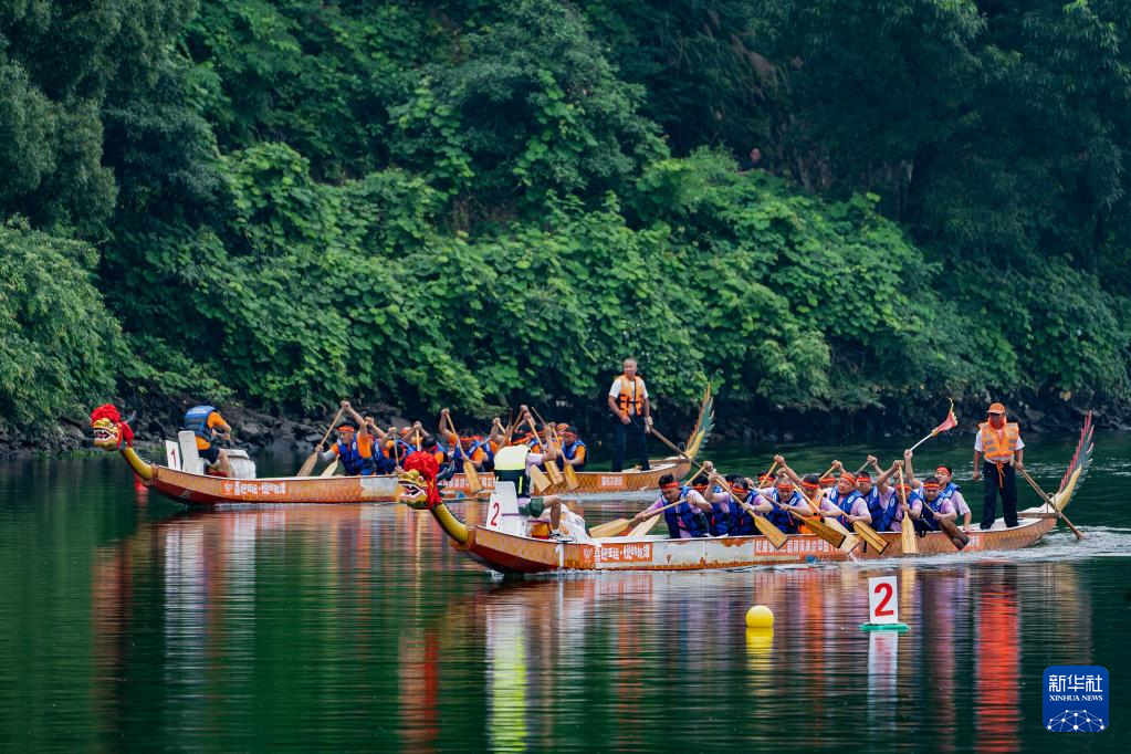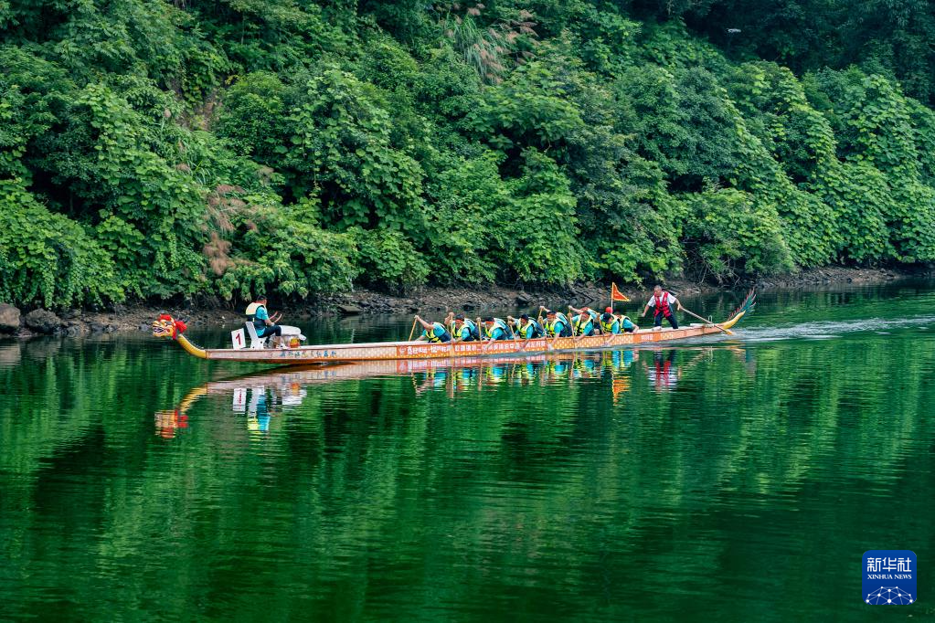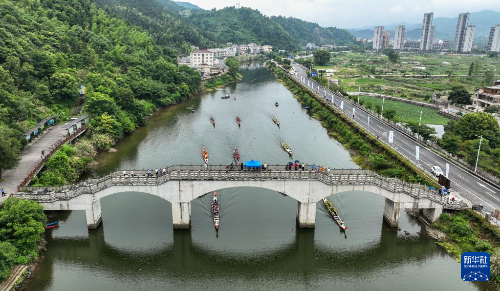当日,浙江省建德市乾潭镇举办胥溪清凉季乡村传统龙舟赛,迎接端午节。近年来,乾潭镇充分挖掘自然山水的优势,将体育旅游、生态旅游、乡村度假有效结合,积极推进乡村旅游和乡村振兴。