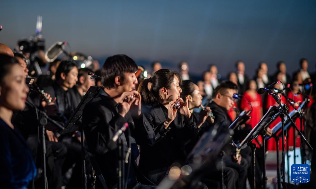 来自昆明聂耳交响乐团及昆明市民族歌舞剧院民乐团的演奏家们在昆明市滇池畔共同演奏包括《义勇军进行曲》《卖报歌》在内的聂耳代表作(7月17日摄)。