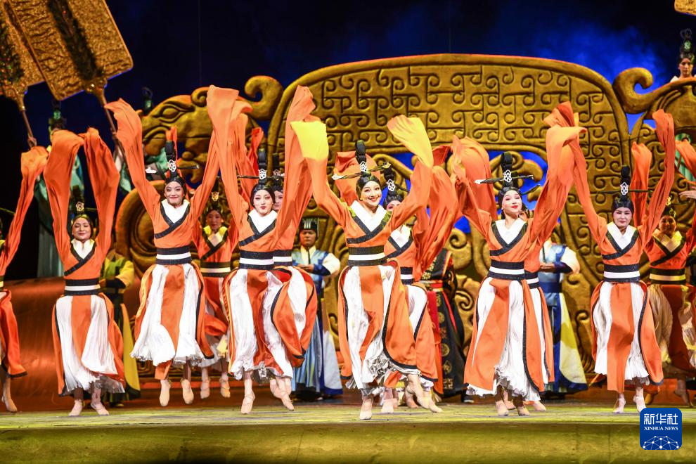 第六届中国新疆国际民族舞蹈节开幕式后,新疆艺术剧院歌舞团演员表演大型原创历史题材舞剧《张骞》(7月20日摄)。新华社记者 胡虎虎 摄