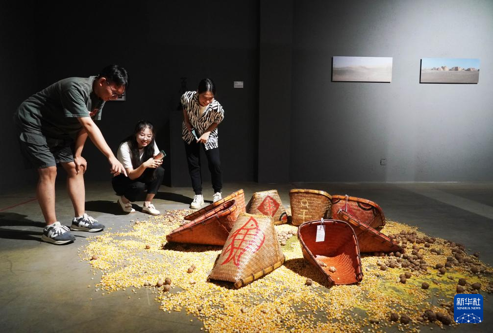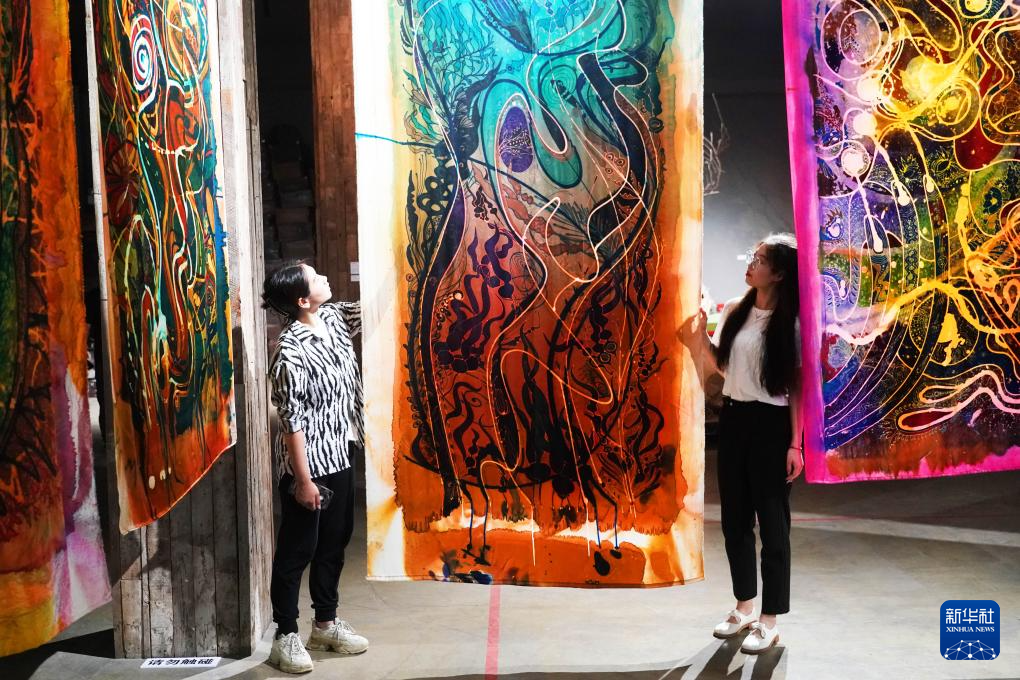 8月8日,观众在位于北京市平谷区的万圣谷美术馆参观艺术作品。