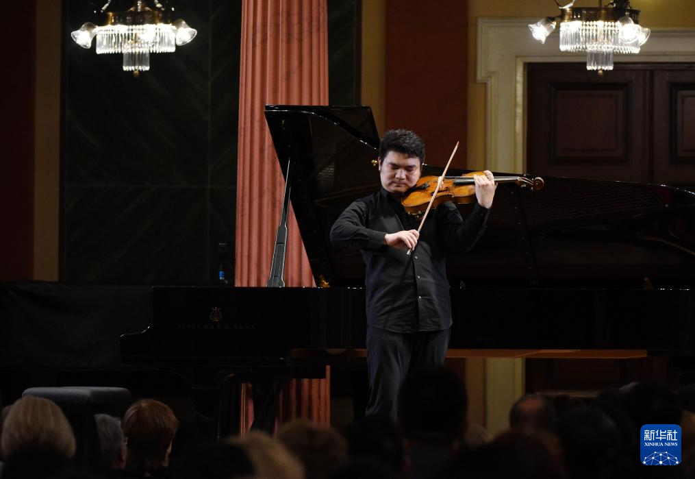 8月10日,在奥地利维也纳,演奏者表演提琴独奏《声情》。新华社记者 贺灿铃 摄