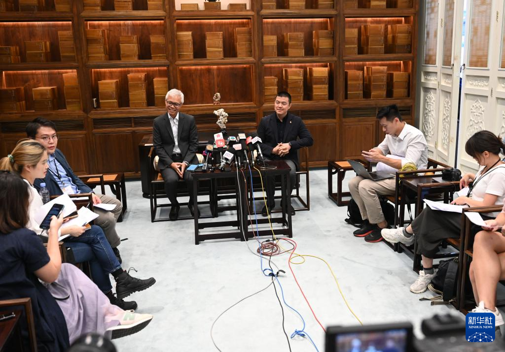 8月22日,故宫博物院常务副院长娄玮(右)、香港故宫文化博物馆馆长吴志华在北京故宫博物院接受采访。新华社记者 金良快 摄