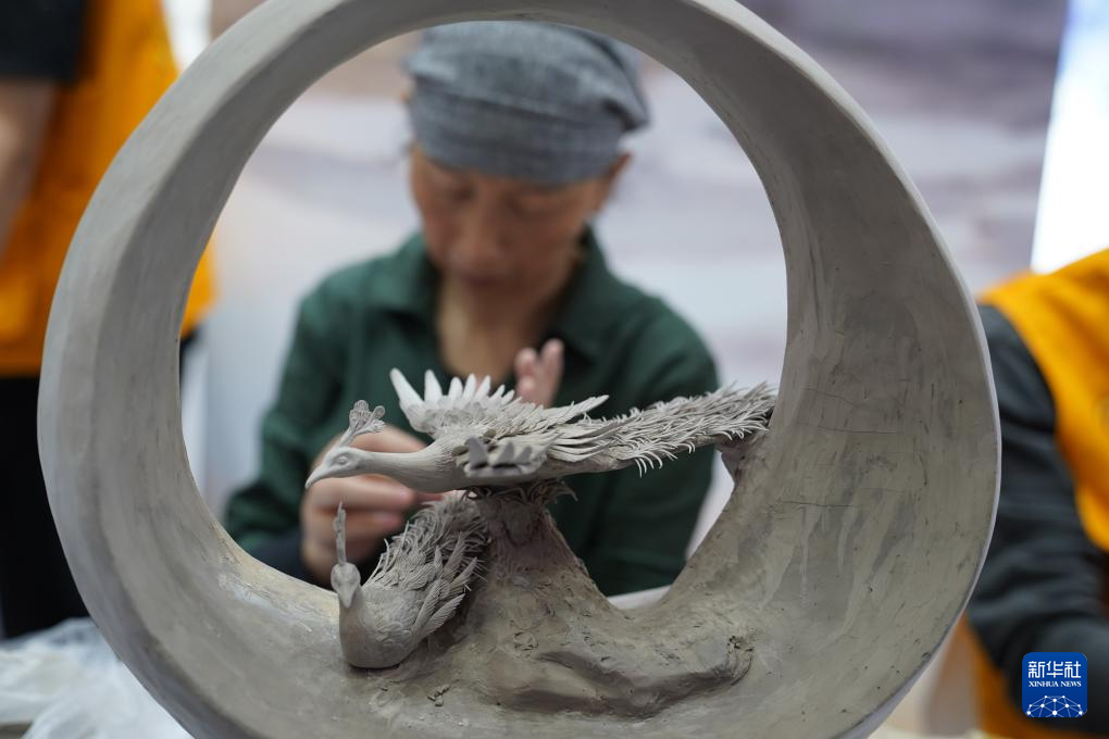 10月18日,在瓷博会瓷都工匠技艺展示馆,一名“瓷都工匠”在展示捏雕技艺。