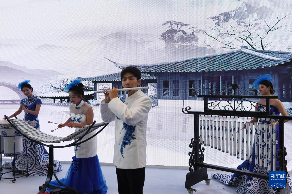 10月18日,演员在瓷博会现场演奏陶瓷乐器。