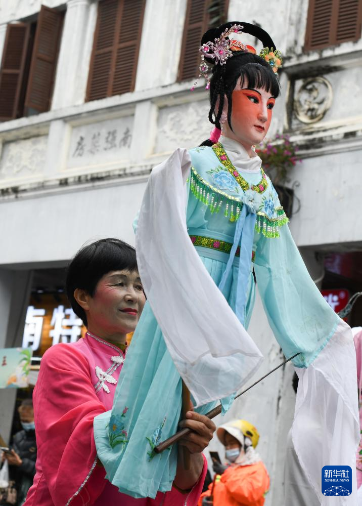 12月23日,来自海南临高县的“人偶乐舞”在海口骑楼老街进行非遗巡游。