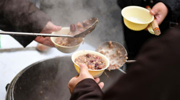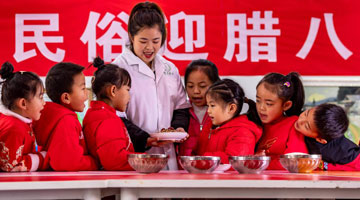 1月19日,人们在河北省遵化市平安城大集上选购糖果。