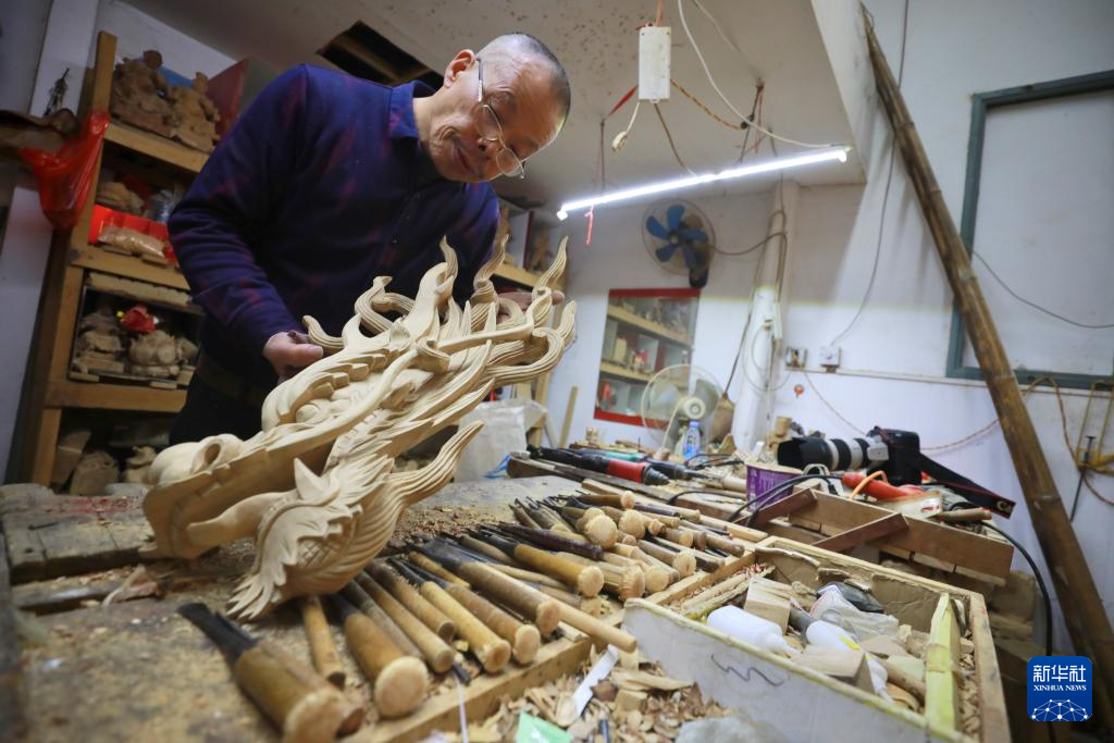 龙年春节将至,在福建省晋江市东石镇潘山村的木雕厂内,工人们加紧赶制出货订单,一件件精美的龙柱、龙头等庙宇木雕产品在工人们的精雕细琢中诞生。潘山庙宇木雕以庙宇雕刻为表现方式,历史悠久,工艺精湛,产品主要在海峡两岸销售,同时销往新加坡、印度尼西亚、菲律宾等东南亚国家。2021年,以潘山庙宇木雕为代表的泉州木雕成功入选第五批国家级非遗名录。