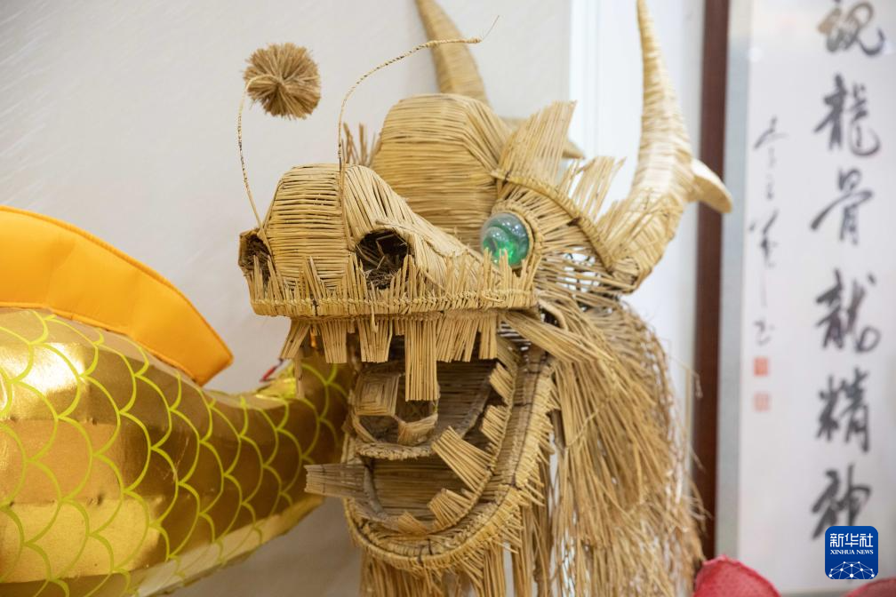 1月30日在南昌市青云谱区城南龙灯工厂拍摄的用稻草编制的传统城南龙灯。