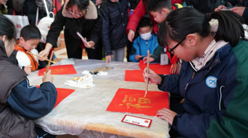 法国华人社区4日在巴黎香榭丽舍大街主办舞龙舞狮等表演活动,庆祝即将到来的龙年春节。