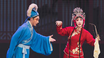 2月18日,人们在贵州省龙里县民俗踩街活动中表演太平花灯戏。