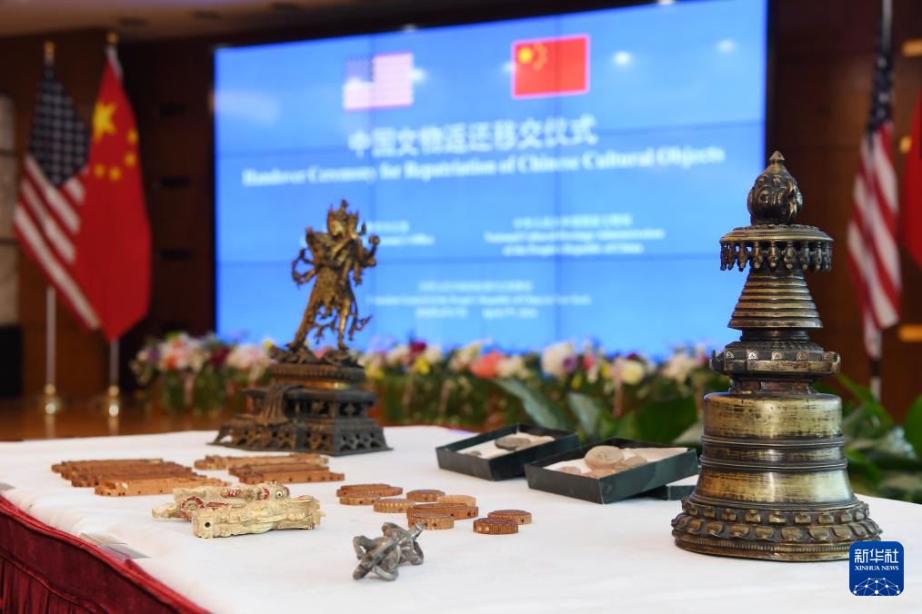 4月17日,在美国纽约中国驻纽约总领馆,中美双方代表出席中国流失文物艺术品返还移交仪式。