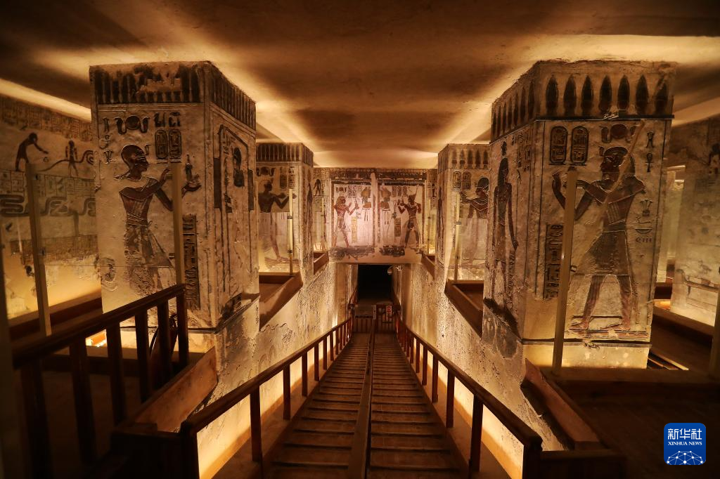 这是2024年4月8日在埃及卢克索帝王谷拍摄的一处壁画。