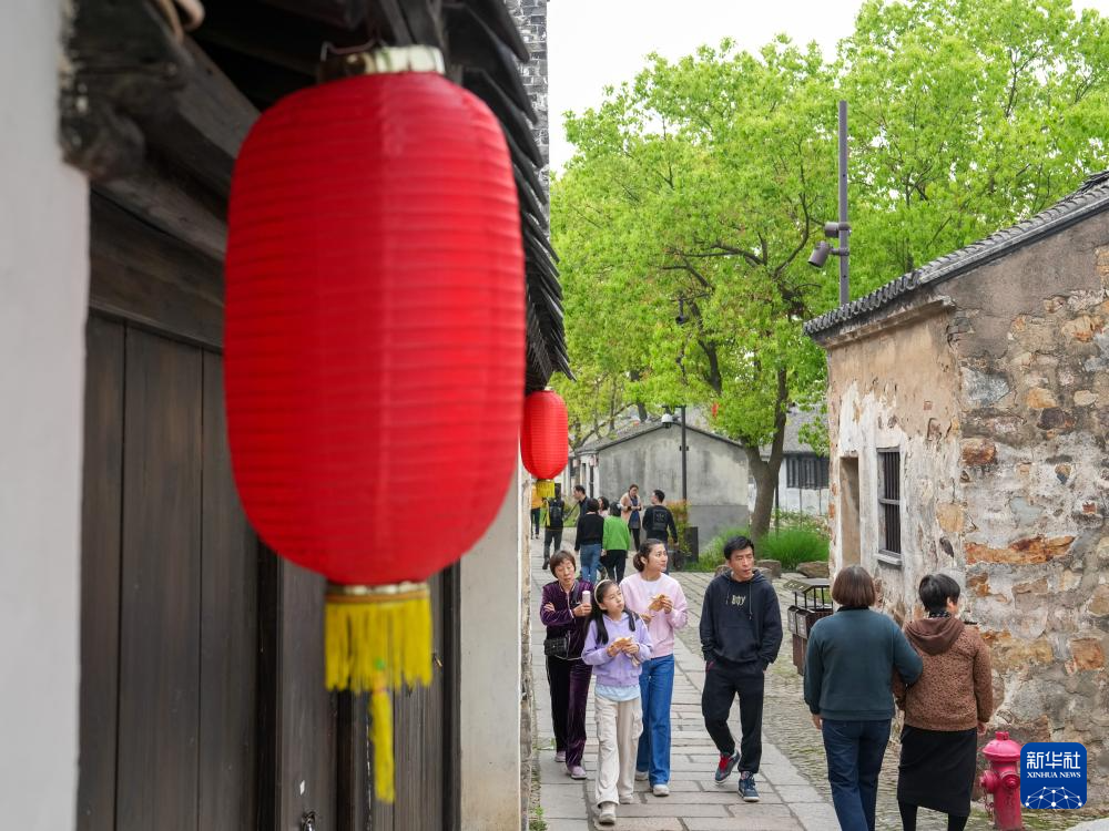 4月21日,游客在常州焦溪古镇游览。