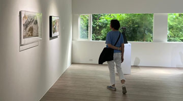 4月28日,在比利时布鲁塞尔,参赛选手在“汉语桥”世界大学生中文比赛比利时赛区决赛中展示画作。