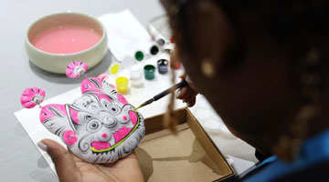5月20日,游客在西安大唐不夜城景区一家文创产品店内游览选购。
