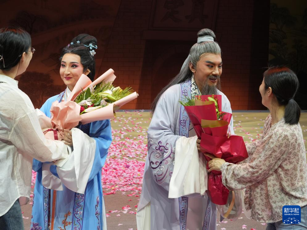 5月22日,观众向评剧《东垣大医》的演员献花。