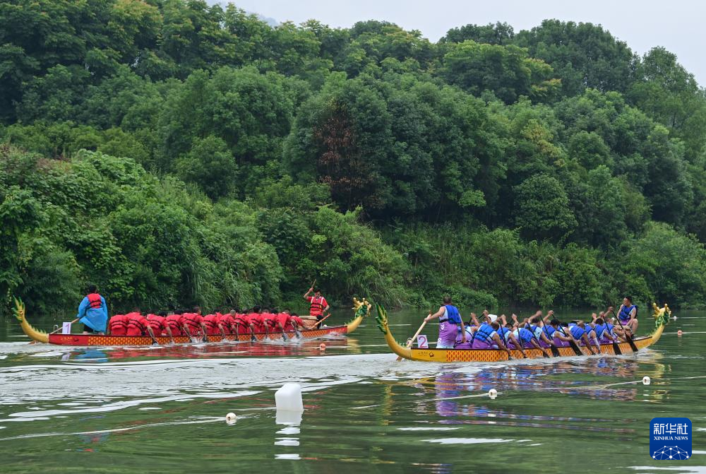 端午节临近,重庆市酉阳土家族苗族自治县龙潭镇举行划龙舟比赛,吸引来自湖北、重庆等地的15支队伍参加角逐。