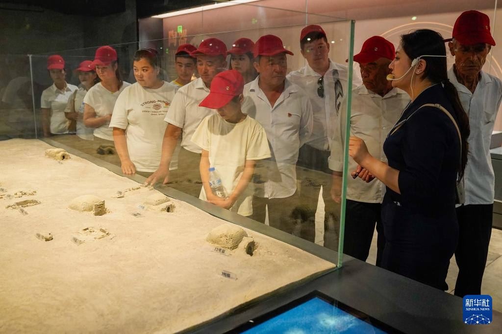 7月15日,观众在新疆库车市龟兹魏晋古墓遗址博物馆参观。