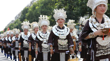 7月17日,嘉宾在香港书展北京主题城市推介活动启动仪式上观看京剧《贵妃醉酒》。新华社记者 吕小炜 摄