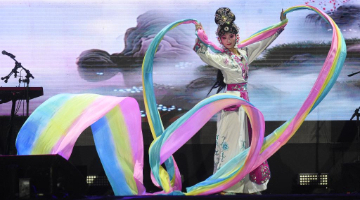 8月18日,在巴西圣保罗,西北民族大学艺术团成员在“中国的色彩:民族万花筒”晚会上表演。