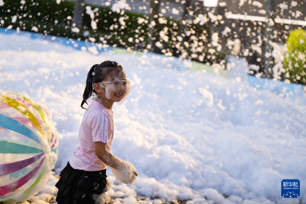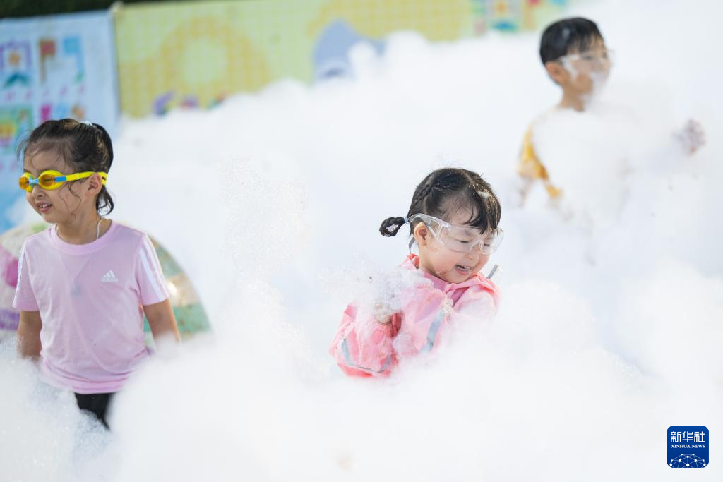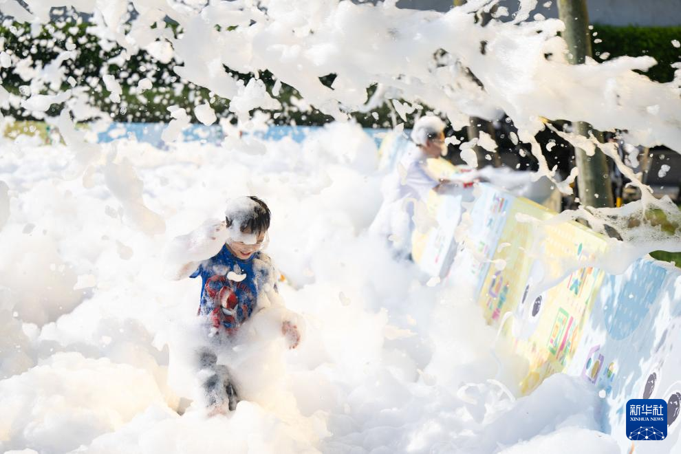 8月24日,小朋友在“童乐日”艺术嘉年华泡沫派对上游玩。
