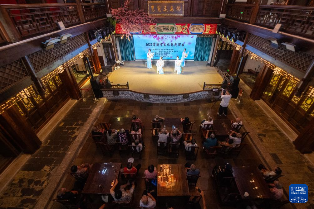 9月4日,在常德河街,国家级非遗项目常德丝弦的演员为游客表演。
